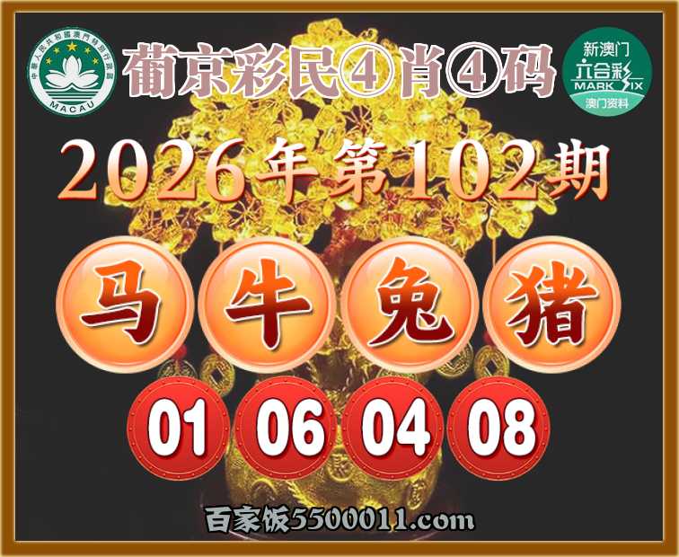 102期:《葡京彩民》 🕯④肖④码🕯【马牛兔】【01.06.04.08】开:猪20准上榜高手
