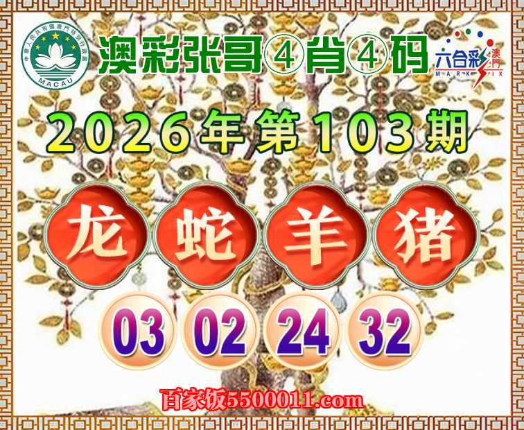 103期:《澳彩张哥》 ✌️④肖④码✌️【龙蛇羊猪】【03.02.24.32】开:牛06